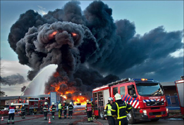 This is a picture of a fire at a chemical factory in the Netherlands. It took 150 firefighters to put out the flames, and while the plant burned completely to the ground, no injuries were recorded despite the toxic fumes.
